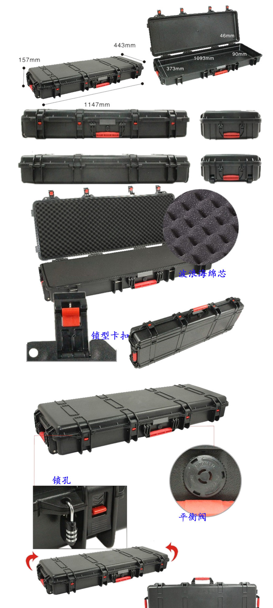 簡(jiǎn)要說(shuō)明:廣泛用于傳媒、公安、消防、軍隊(duì)、航空、戶(hù)外攝影、野外考察、科學(xué)探測(cè)等眾多領(lǐng)域的高端儀器、儀表。具有高強(qiáng)度、高抗壓沖擊、防潮、絕對(duì)密封、防塵、防水等特點(diǎn)。產(chǎn)品材質(zhì):ABS原料,箱體采用高抗沖擊的高分子聚合材料一體注塑成型,密封采用扁型彈性發(fā)泡密封橡膠條,確保防水氣密,所有較軸均采用不銹鋼材質(zhì)。